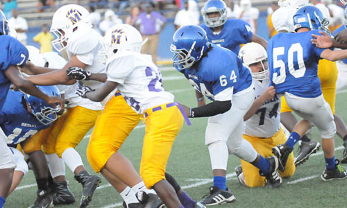 Photos by Kevin Nagle It was a frustrating night for the Bryant Blue Hornets eighth grade football team of Bethel Middle School on Thursday. Five times, the Hornets…