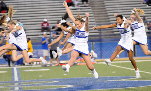 Photos by Kevin Nagle The eighth grade dance and cheer squads of Bryant Middle School performed at halftime of Tuesday’s football game between the Bryant White Hornets and…