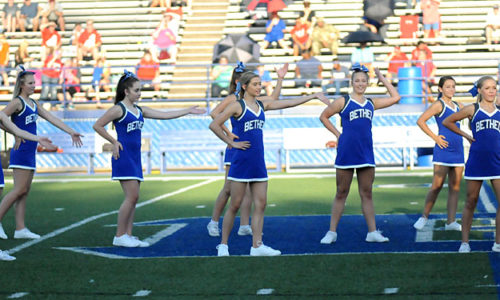 Photos by Kevin Nagle The Bethel Middle School eighth grade cheer and dance teams entertained at halftime of Thursday’s game against Cabot Red.