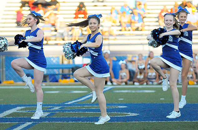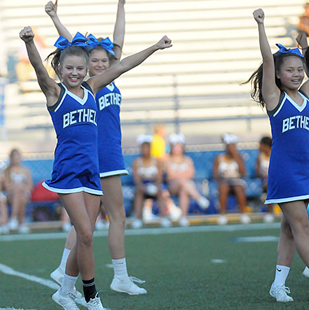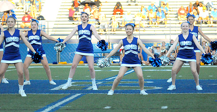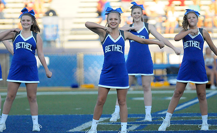 The Bethel Middle School eighth grade cheer and dance squads entertained the fans at halftime of the Bryant Blue Hornets’ game against the North Little Rock Charging Wildcats at Bryant Stadium on Thursday.