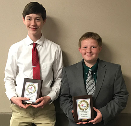 Spencer Rhoden and Jacob Reynolds — 3rd place Sports/Entertainment Management (9th grade)