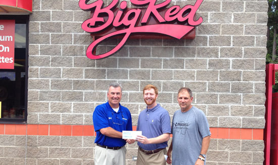 David Hendrix Jr. of Big Red Stores presents Bryant Athletic Director Mike Lee with Bryant baseball coach Kirk Bock with a donation of $5,000 to Bryant Athletics.