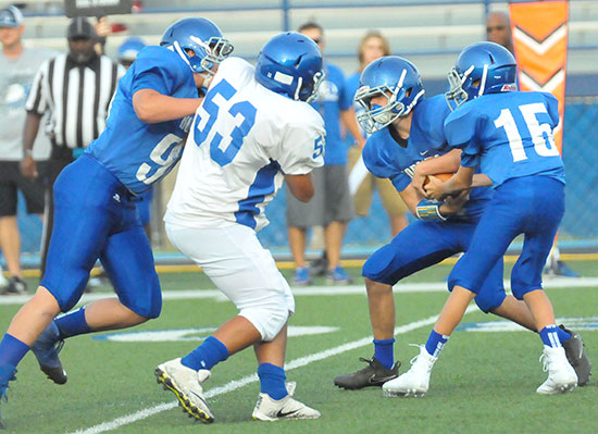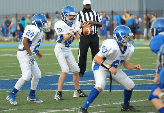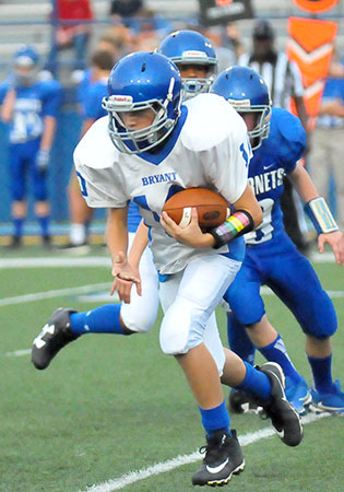 The eighth grade B teams from Bryant Middle School (Bryant White) and Bethel Middle School (Bryant Blue) tangled on Tuesday night to get the 2017 football season started at Bryant Stadium.