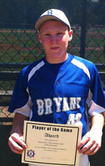 MOUNTAIN HOME — Liam Miller’s one-out single in the bottom of the seventh drove in Connor Tatum with the[more] winning run as the Bryant 14-year-old All-Stars won in walk-off fashion, 6-5, over Eagle Pass, Texas on Saturday. Bryant advances to the winners bracket of the 2012 Babe Ruth League Southwest Regional Tournament. They were set to play either Mountain Home or Long Beach, Miss., today at 5 p.m.