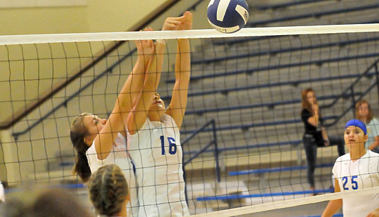 The Bryant Blue Lady Hornets eighth grade team of Bethel Middle School scrimmaged during the annual Lady Hornets volleyball showcase at Bryant Middle School gym on Tuesday night. The Lady Hornets, led by head coach Melissa Bragg, open their season at Cabot White next Monday, Aug. 22.