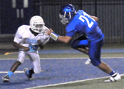 Bryant Blue took a 7-0 lead in the first half on Burnett’s first-quarter TD pass to Jeff Silva. Fabian Torres kicked the extra point.