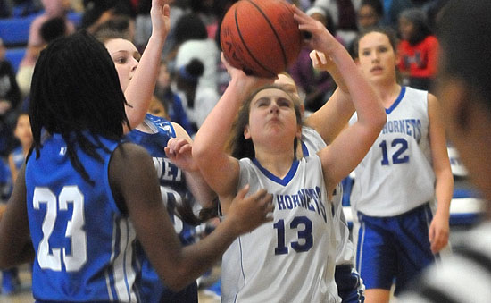 The Bryant Blue Lady Hornets seventh grade team of Bethel Middle School hosted the Bryant White Lady Hornets of Bryant Middle School on Tuesday night.