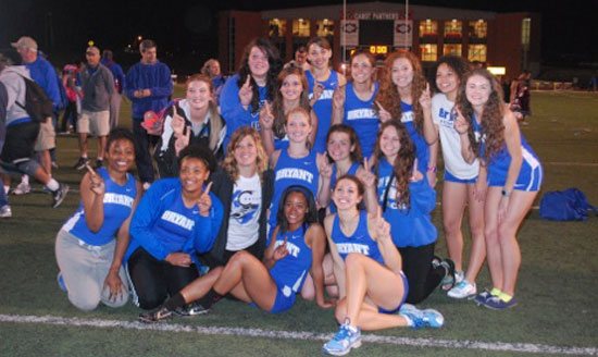 CABOT — The Bryant Lady Hornet track team won their second consecutive team championship Tuesday night at the Cabot Invitational. Bryant took the title with 155 points over Cabot (133), LR Central (64), Conway (59), North Little Rock (47), and Sheridan (41).  There were 13 total teams competing.