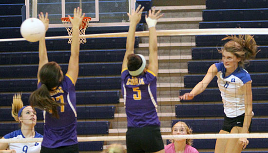 In the varsity match at Lakeside, sophomore Raven Loveless added 12 kills. Seniors Britney Sahlmann and Kendall Selig had four each while Brittney Warner, Sarah Kennedy and Savannah Shelton pitched in with one apiece.