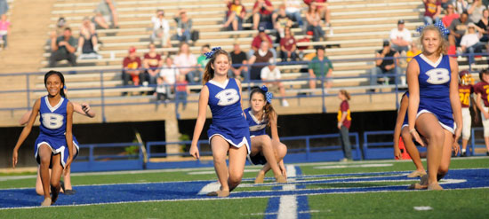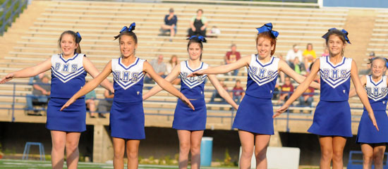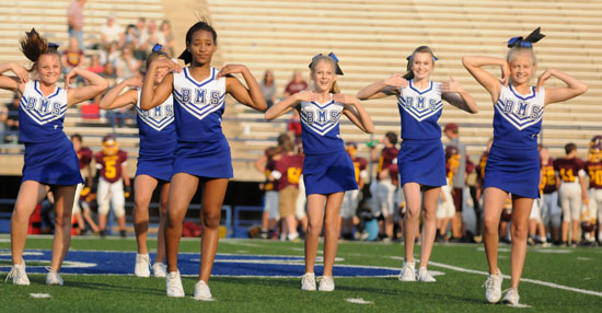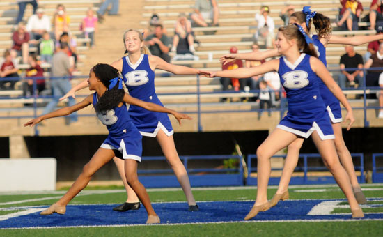 The Bryant Middle School seventh grade cheerleaders and dance team performed at halftime of the football game against Lake Hamilton Monday night.[more]