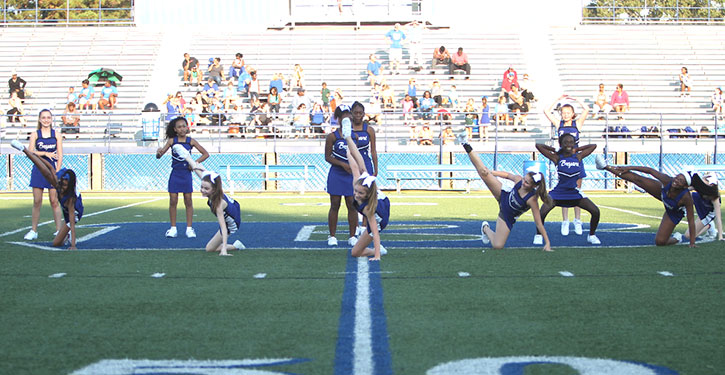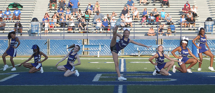 The Bryant Middle School seventh grade cheer and dance teams performed at halftime of Monday night’s football game between the Bryant White Hornets and the Pinnacle View Sky Hawks at Bryant Stadium.
