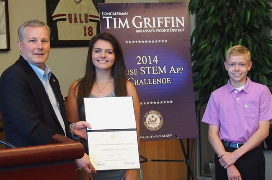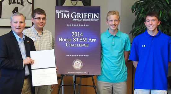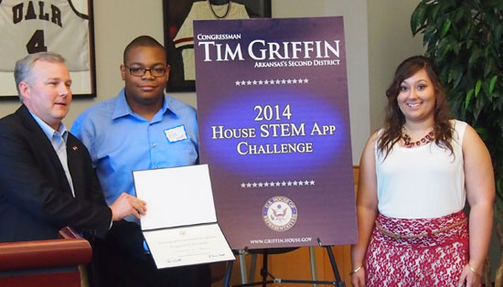 Congressman Tim Griffin recently held an awards reception at UALR on Thursday, June 5, recognizing students for their work in the House STEM App Challenge. Bryant High School students took the top three awards in the 2nd congressional district, and the winning team’s work will be included in a display at the U.S. Capitol.