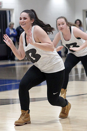The Bryant varsity dance team performed at halftime of the Bryant-North Little Rock boys game on Tuesday night.