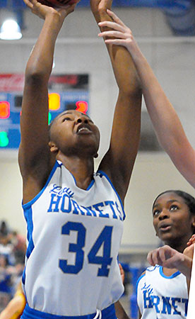 Caitlin LaCerra added 6 points, Regan Dillon 5, Daria Greer 4, Jayla Keith 3 and Brandy Strickland 2 for the Lady Hornets.