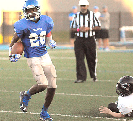 Dylan Haynes (2) tries to lead the way for Bryant White running back Roderick Bailey (24). (Photo by Kevin Nagle)