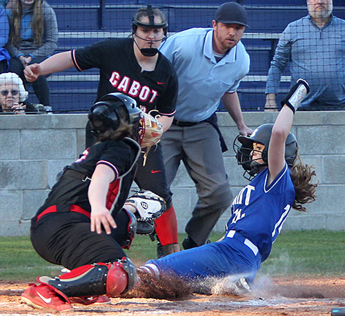 Bryant made a bid to score in the bottom of the second. Bowers led off with a single, but Cabot turned a doubleplay on Regan Dillon’s grounder to short. Haleigh Beck singled and Bella Herring reached on an error. Joely Calhoun bunted and reached first on an error but when Beck tried to score on the play, she was thrown out at the plate.