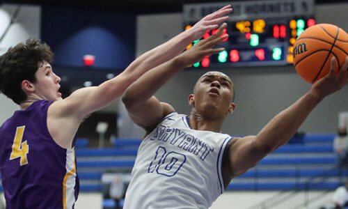 File photo by Rick Nation FORT SMITH — Camren Hunter finished one assist shy of a triple double and Kade Ruffner poured in 18 points as the Bryant…