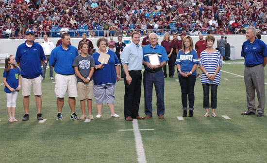 Photo by Kevin Nagle Herman Thompson was joined by his family as he received the 2014 Rob Patrick Award for Community Support for Bryant before Friday night’s Salt Bowl…