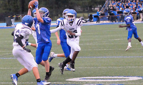 For more photos from this event by Kevin Nagle, go here Gideon Motes ran for a touchdown and passed for two, both to Cason Trickey, as the Bryant…