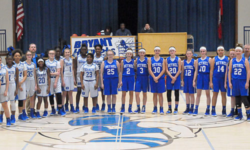 For more photos from this event by Kevin Nagle, go here Natalie Edmonson drove for a layup with :07 on the clock to lift the Bryant Blue Lady…
