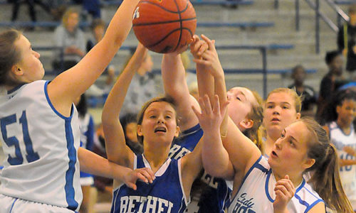 For more photos of this event by Kevin Nagle, go here The Bryant White Lady Hornets of Bryant Middle School and the Bryant Blue Lady Hornets of Bethel…