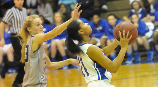File photo by Rick Nation LITTLE ROCK — Despite 33 points and 15 rebounds from Parris Atkins, the Bryant Lady Hornets could not stay ahead of the Little…