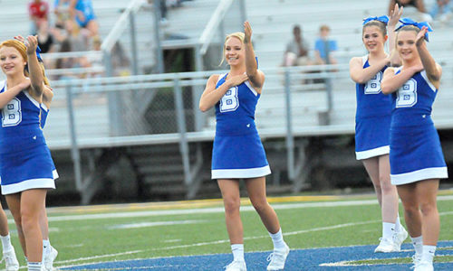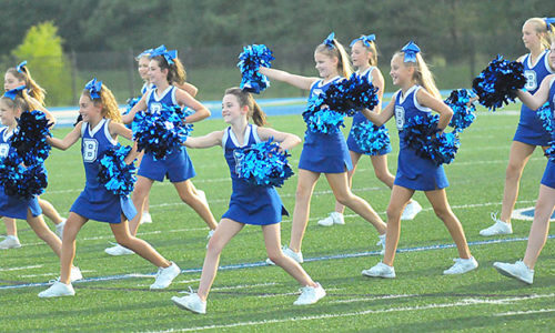 For more photos of this event by Kevin Nagle, go here The spirit squads performed at halftime of Tuesday’s eighth grade B game at Bryant Stadium.