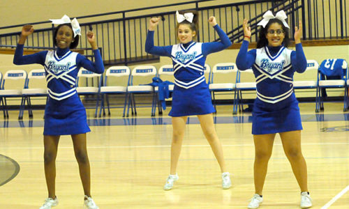 For more photos from this event by Kevin Angle, go here The Bryant Middle School cheerleaders entertained at halftime of Thursday’s eighth grade girls game between the Lady…