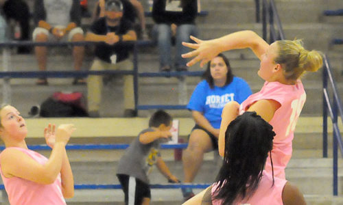 For more photos from this event by Kevin Nagle, go here The Bryant White Lady Hornets seventh grade team of Bryant Middle School hosted the Bauxite Lady Miners…