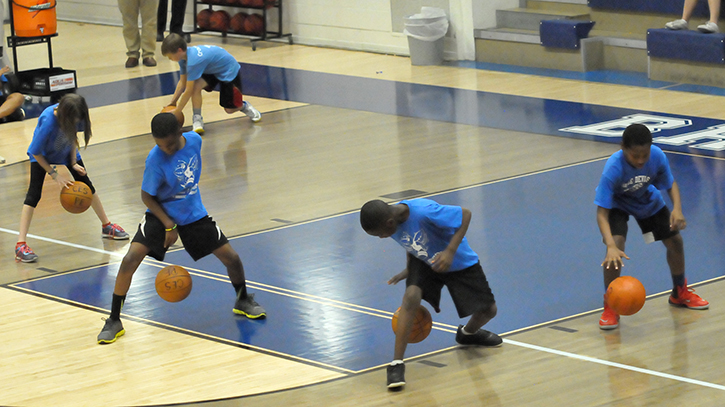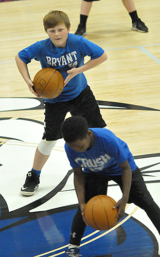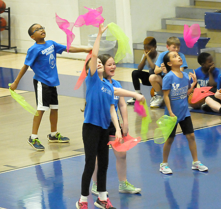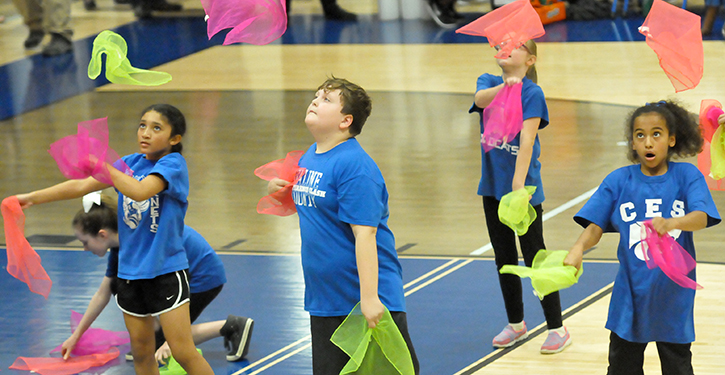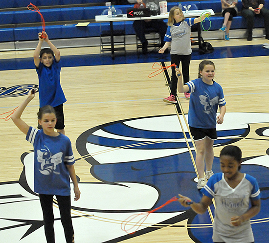 The Collegeville Elementary School Teams of Tomorrow and P.E. classes of Coach Angel Dale performed at halftime of Tuesday’s basketball game at the Hornets Nest. Beyond the dribbling exhibition, the students juggled scarves and jumped rope.
