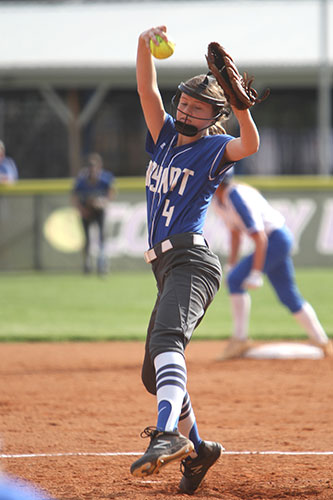 Bryant head coach Lisa Dreher got time for all three of her pitchers in the game. Hannah Work pitched into the third, giving way to Christine Mefford. She pitched into the fifth before giving way to Lexi Helton who finished up.