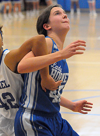 Brilynn Findey scored 15 points and the Bryant White Lady Hornets seventh-grade team of Bryant Middle School played stingy defense in a 28-9 win over the Bryant Blue Lady Hornets of Bethel Middle School on Thursday at the Bethel gym.