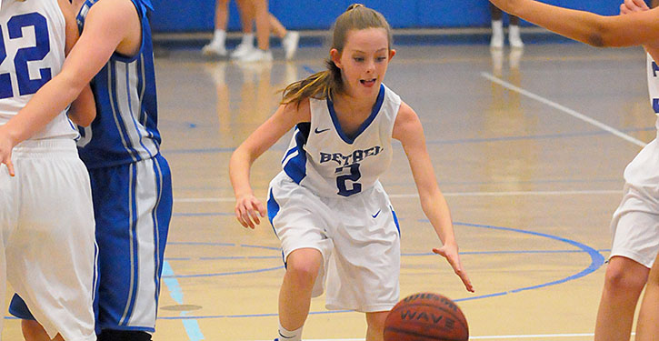 Brilynn Findey scored 15 points and the Bryant White Lady Hornets seventh-grade team of Bryant Middle School played stingy defense in a 28-9 win over the Bryant Blue Lady Hornets of Bethel Middle School on Thursday at the Bethel gym.