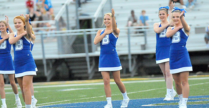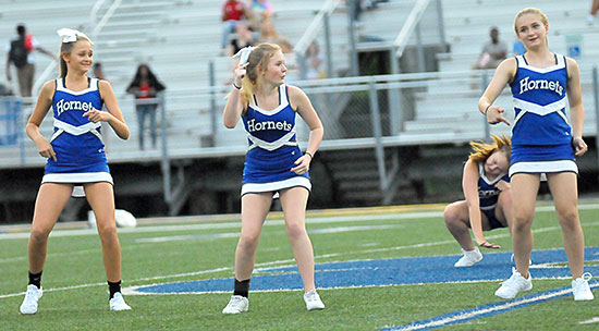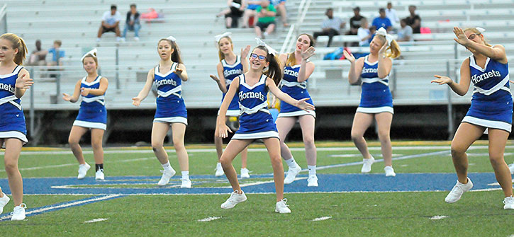 The spirit squads performed at halftime of Tuesday’s eighth grade B game at Bryant Stadium.