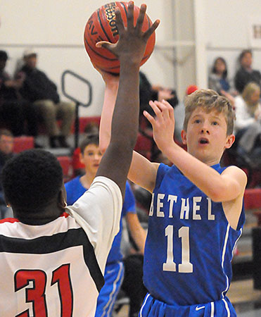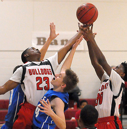 WHITE HALL — The White Hall Bulldogs’ eighth grade basketball team ran out to a 16-3 lead in the first quarter before the Bryant Blue Hornets of Bethel Middle School could get their feet under them on Tuesday night. The Hornets rallied but White Hall held on for a 53-39 victory.