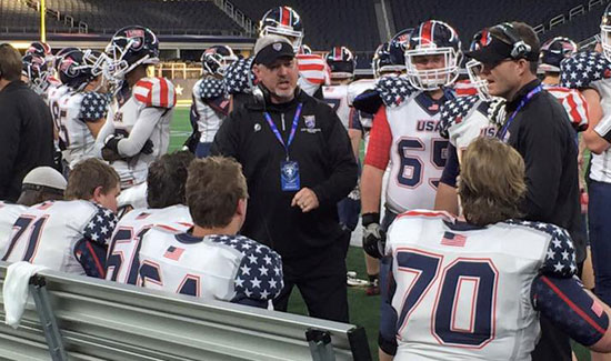 Former Bryant football coaches Daryl Patton and Paul Calley teamed up on the coaching staff of the United States Under-18 Select Football team for the International Bowl on Feb. 5 at AT&T Stadium in Dallas. In a game against the Canadian U-18 team, the U.S. team rolled to a 34-3 win.
