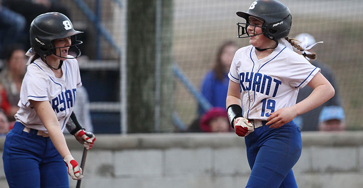 Bryant grabbed a 2-0 lead in the first when Hulett ripped a triple to right-center and scored when Meagan Chism’s fly to right was misplayed. Chism wound up at second and, with two outs, scored on Loveless’ double.