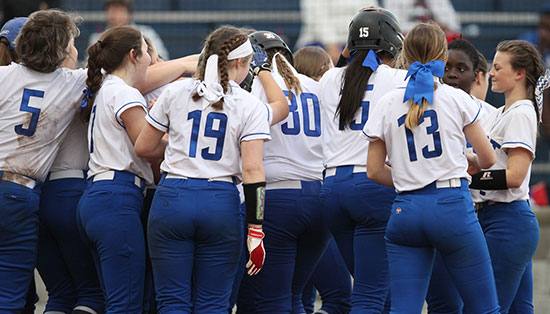 Brooklyn Trammell is greeted at the plate after her home run. (Photo by Rick Nation)