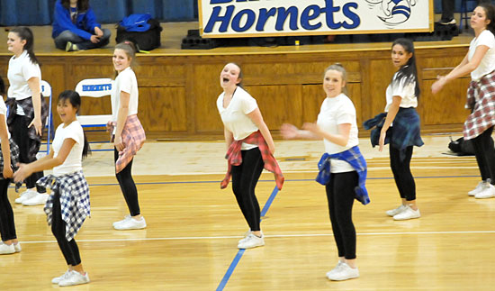 The Bryant freshman dance and cheer squads performed at halftime of Thursday night’s game between the Hornets and the Russellville Whirlwinds.