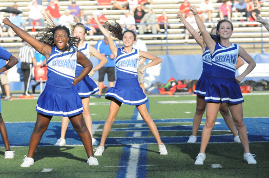 The Bryant freshman cheer and dance teams performed at halftime of Thursday’s game against the Cabot South Panthers.