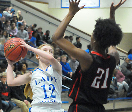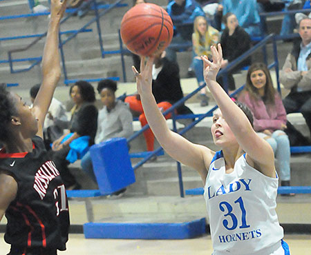 Thursday’s game was tied 4-4 late in the second quarter. The first quarter had ended 2-2. Kaitlyn Weng had accounted for the Lady Hornets’ first basket and Funk’s 12-foot jumper was Bryant’s second.