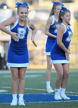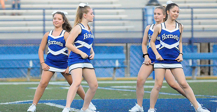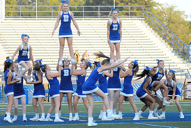 The Bethel Middle School eighth grade cheer and dance squads performed at halftime of the B team game between the Bryant Blue Hornets and the Lake Hamilton Junior Wolves on Tuesday night at Bryant Stadium.
