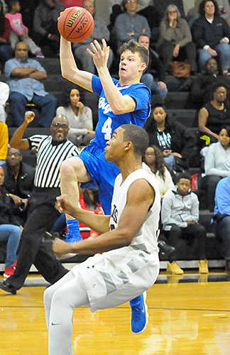 It hurt the Hornets at Central also that senior Sam Chumley, who had experienced the Central gym before, struggled with foul trouble after scoring 7 points in the first quarter and all 10 of his points in the first half. He eventually fouled out so the Hornets had to play on without his calming effect.