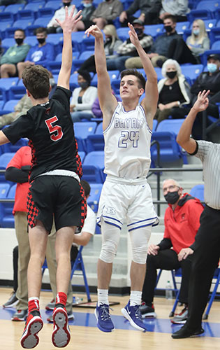 Bryant started the second half like they’d played the second quarter. Adams and Ruffner bombed away from long range and it was 49-24.