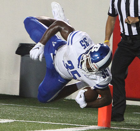 Adams scored three touchdowns and rushed for 85 yards on 13 totes. Ledbetter passed for three scores, hitting 15 of 23 attempts for 326 yards. He was 14 of 21 for 307 yards at the half.