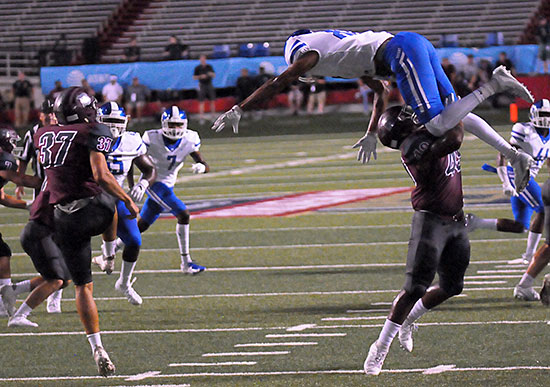 A pair of big hits by Jordan Hunter on swing passes each cost Benton a yard, setting up a fourth-and-10. Brown’s pass into the end zone was broken up by Darrick Rose.
