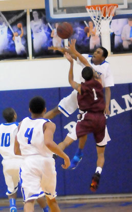 Running clock, the Hornets had been spreading the floor and, on the subsequent trip, senior C.J. Rainey found a seam and drove to the hoop only to be confronted by a couple of Pine Bluff’s considerably bigger guys at the rack. He missed the shot but somehow scrambled after the rebound.