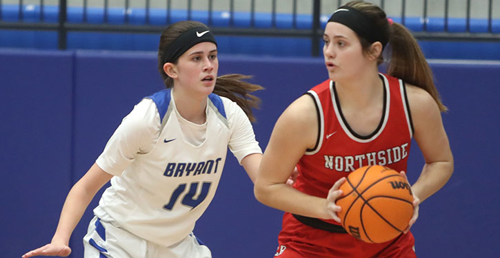 Bryant finally got on the board with :22.8 left in the first quarter when junior Parris Atkins came through with a three-point play. Haitiana Releford beat the buzzer ending the period, with a driving layup and Northside held a 26-3 lead going into the second quarter.