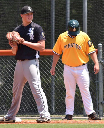 Jake Snider led off the top of the sixth for the Pirates but a line drive to shortstop Noah Davis and a throw to Will Hathcote at first, doubled him off. A pop to Collins at second ended the inning.