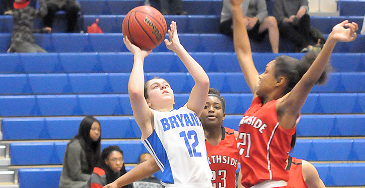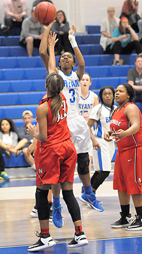 The lead was 25-8 midway through the second quarter. The Lady Hornets ratcheted up the defense and held the Lady Bears to one point the final four minutes of the half. Though they didn’t take full advantage, the Lady Hornets trimmed the margin to 26-12 on a 3-pointer by Riley Hill and a free throw by Lania Ratliff before the break. And when Allison Steen fed Kendal Rogers for a layup to start the second half, Bryant had battled back to within 12.